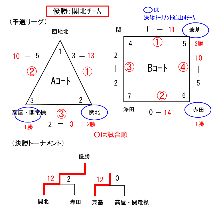 | 関北 | 3 | 2 | 3 | 4× | 12 |