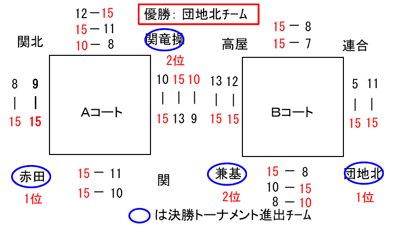 | 関北 | 3 | 2 | 3 | 4× | 12 |