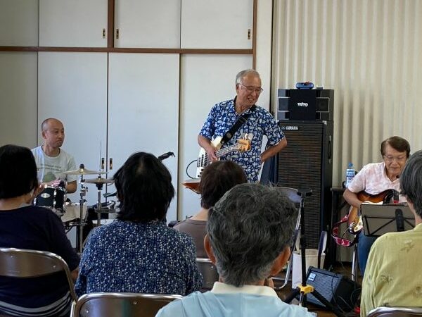 6月度定例活動 ”べストフレンズ”をお招きしました! ~久々井いきいきサロン~ 投稿日:2025年7月1日 令和7年6月27日(金) に”ベストフレンズ”の皆さんをお招きし、昭和の歌謡曲をバンド演奏と歌で楽しみました。 私たちは、懐かしさを感じながら、何曲も一緒に歌いました。日頃 大声で歌う機会が少ないので、歌い終えるとスッキリした気持ちになりました。 演奏終了後、ベストフレンズの皆さんと私達でコーヒータイムをとりました。演奏の話やサロンの活動の話などに花が咲き、とても楽しい時間を過ごすことができました。 カテゴリー:トピックス 久々井町内会