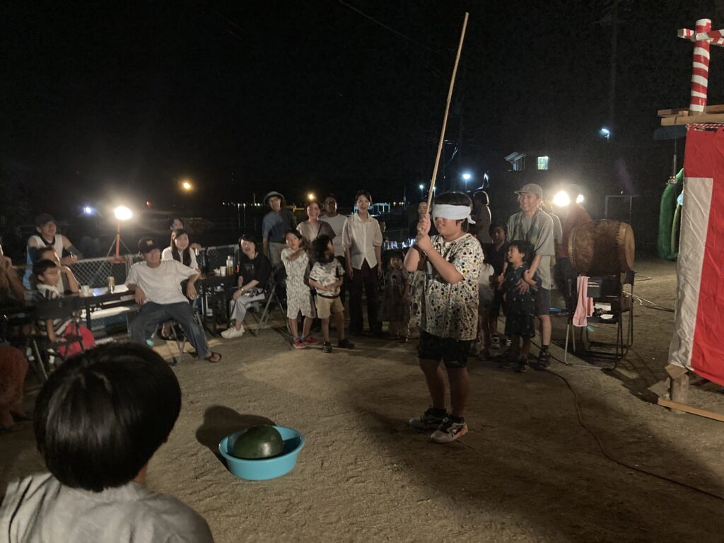 かつての賑わいが戻った”犬島盆踊り” 投稿日:2025年8月16日 8月14日、毎年恒例の犬島盆踊りが開催されました。今年は、約20年前に島内でパフォーマンスをされた劇団「維新派」(2017年解散)のメンバーも参加。例年の倍以上の参加者で久しぶりに立ったやぐらを囲みながら、犬島音頭に合わせて踊りました。恒例のスイカ割りやビンゴ大会も盛り上がり、住民が多かったかつての賑わいを彷彿させるような一夜となりました。来年も再会できますように! カテゴリー:トピックス 犬島町内会
