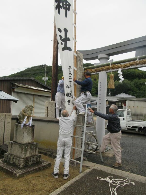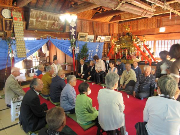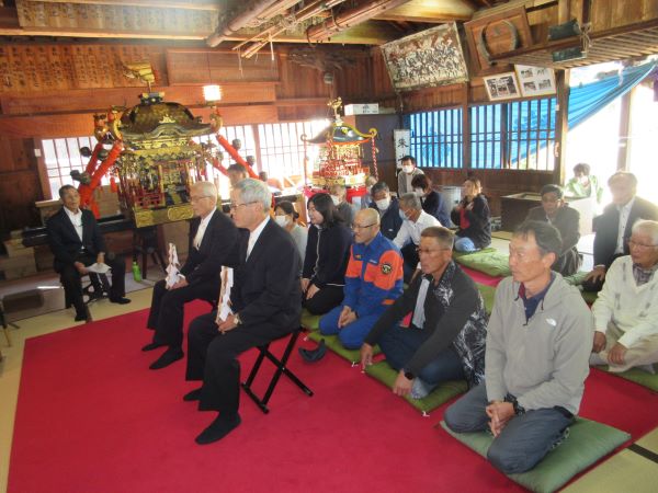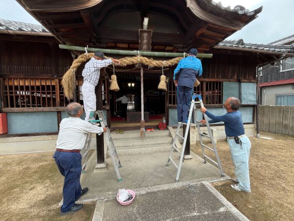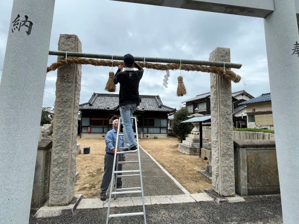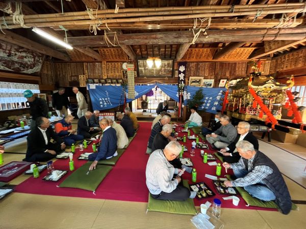 宝神社秋季例大祭が執り行われました。 投稿日:2025年10月24日 令和7年10月23日(木)に宝神社秋季例大祭が営まれました。 10月12日(日)にしめ縄の準備から始め、23日(日)は快晴の天気にも恵まれ本祭が執り行われ、氏子の多くの方が参拝に訪れました。 今回は、準備から本祭までの様子を紹介します。 新しいしめ縄作り 新しいしめ縄の取り付け 新しいしめ縄の取り付け 登り旗の設置 祭当日 祭当日 祷家、各種団体代表による玉串奉納の儀 祷家渡しの儀 閉式後の食事会 カテゴリー:トピックス 宝伝町内会