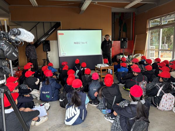 令和8年1月20日(火)の午後、山南学園5年生52名が校外学習の一環として、朝日地区が誇る「朝日海苔」ができるまでを学習しました。朝日漁協事務所や隣接した海苔工場において、職員や組合員の方々が海苔網から海苔を摘み取る船や海苔工場で加工しているところを丁寧に説明し、児童達はメモをとるなど真剣に聞き入っていました。