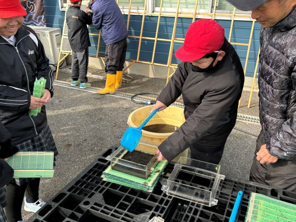 また、手すきによる海苔作りも体験し、興味津々でチャレンジして海苔ができる仕組みがよく理解できたようでした。後日、自分達で作った海苔が食べられることを楽しみにして学習会を終えました。