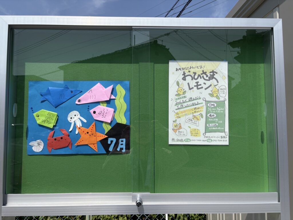 掲示板:子どもたちからの贈り物 2025.7.06 新着情報 町内会のお知らせ掲示板に飾られるのは、役員の子どもたちからの季節のごあいさつです。 とても可愛いらしい絵を毎月プレゼントして下さいます。 とってもお上手ですね。 こうして町民の心を和ませてくれる子どもたちに感謝です。どうもありがとうございます。