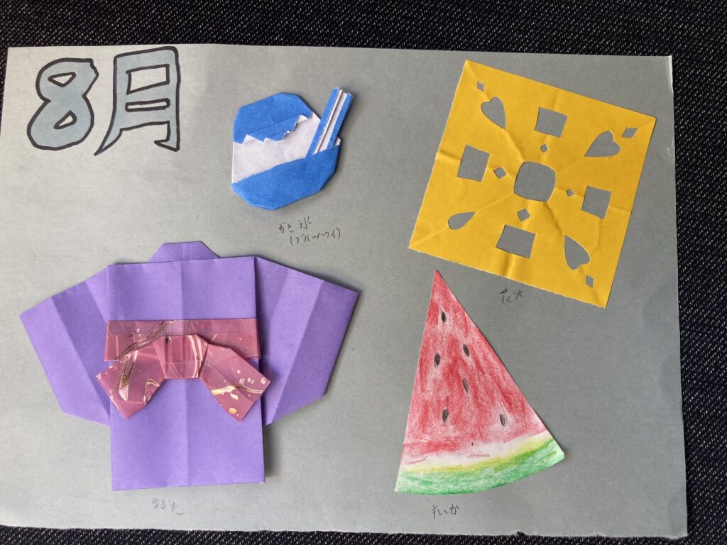 8月掲示板 2025.8.03 新着情報 猛暑が続いていますが、皆様どうぞご自愛くださいますように。 今月も子どもたちの作品が掲示されています。 涼やかな気分にさせてくれますね。どうも有難うございます。