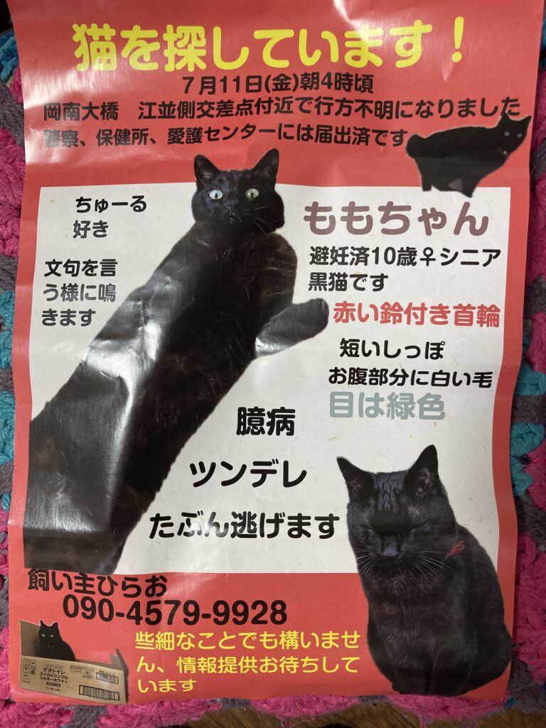 行方不明になった後に、ももちゃんは右耳に大怪我をしている模様。