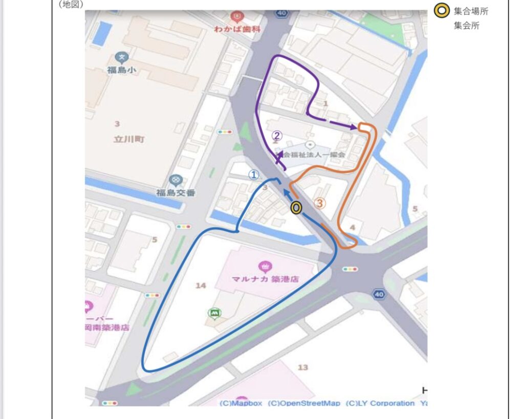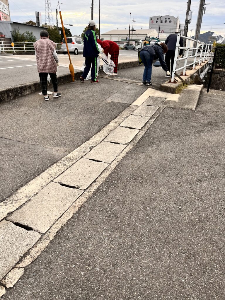 北は福島歩道橋から南はマルナカ築港店までを3グループに分かれ、作業を行いました。