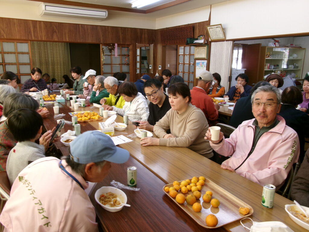 内のcafe496の建物の見学をして、弓削コミニティハウスに行き、昼食に