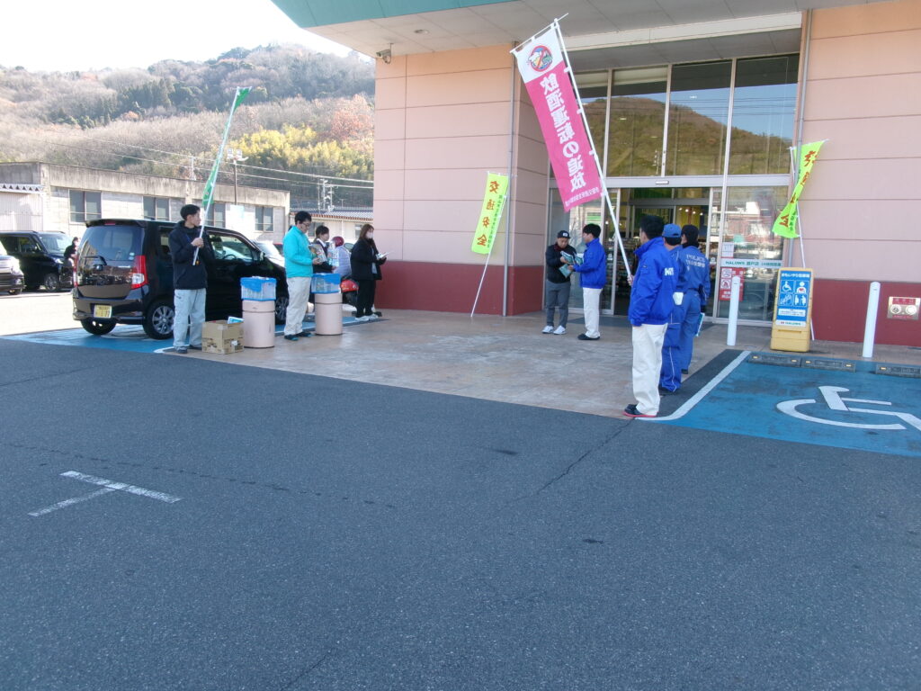 交通安全啓発活動 投稿日:2025年12月23日 12月23日、岡山市交通安全協会瀬戸支部、赤磐警察署、キリンビール㈱岡山工場が共催して、ハローズ瀬戸店で交通安全啓発活動を実施しました。 ハローズ瀬戸店に買い物に来ているお客さんを対象にして、啓発グッズとノンアルコールビールを配布しました。 年末年始の慌ただしい中でも、ゆとりを持った運転で交通事故をおこさないよう啓発活動を行いました。 KODAK Digital Still Camera カテゴリー:新着情報