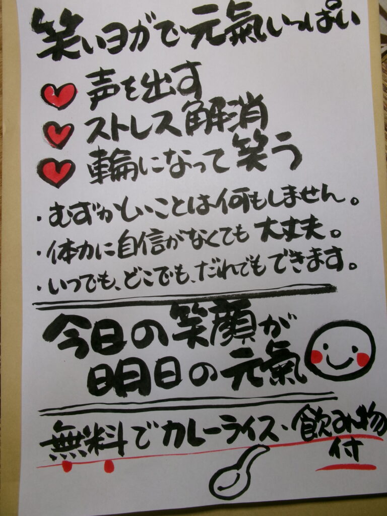 参加無料となっていますので、笑って元気になりたい方は、弓削コミニティハ