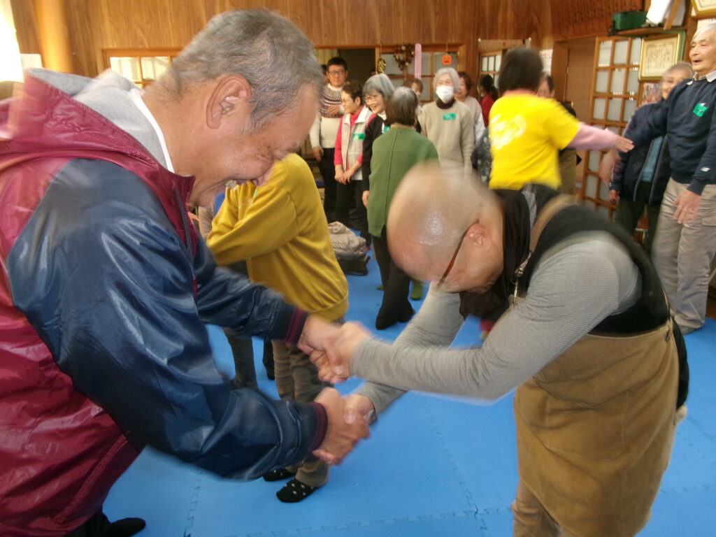 さんを迎え、軽い体操とコミュニティハウス全体に響き渡るような笑