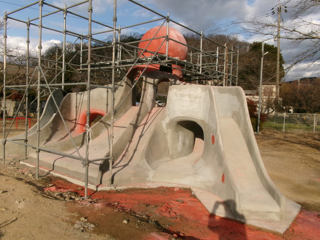 昨年12月に取り壊された万富東公園のタコの滑り台が徐々にタコ二世