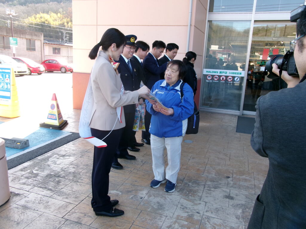 付され、早速、ハローズ瀬戸店の前で啓発活動を行いました。