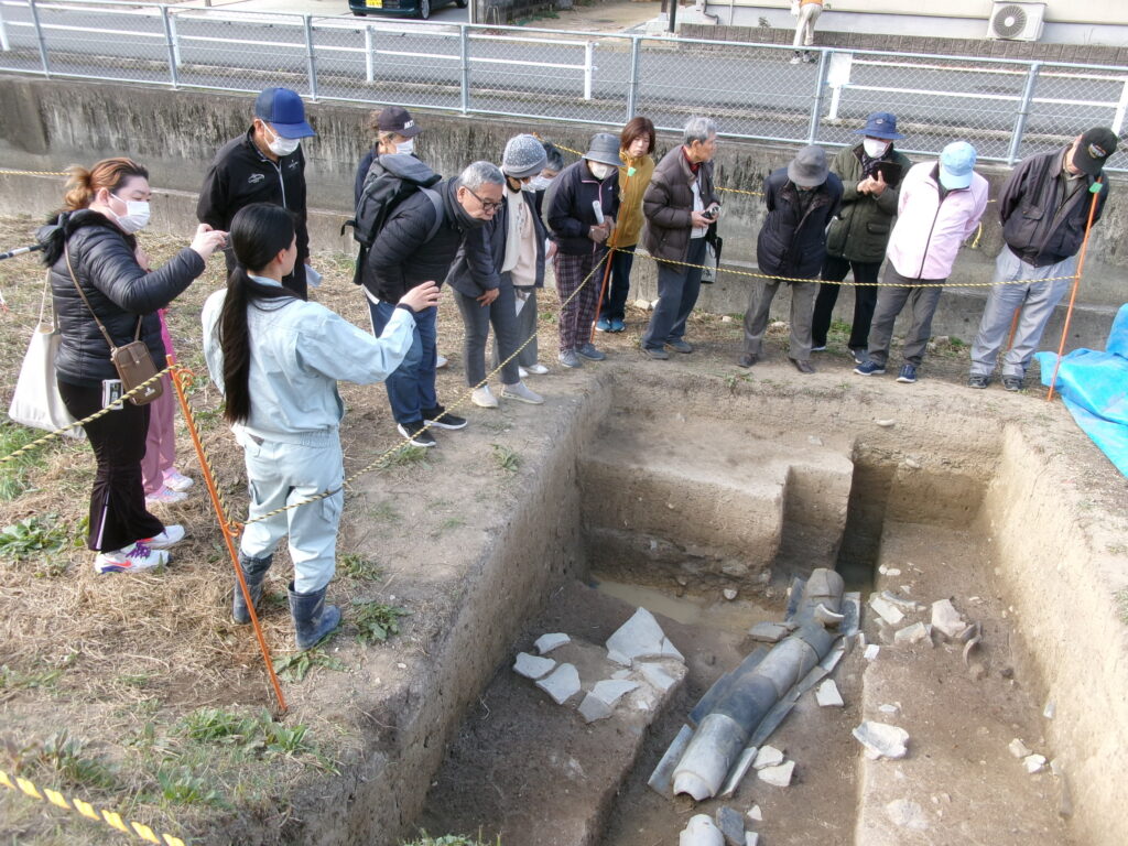 が説明にあたり、発掘の状況について詳しく説明が行われました。