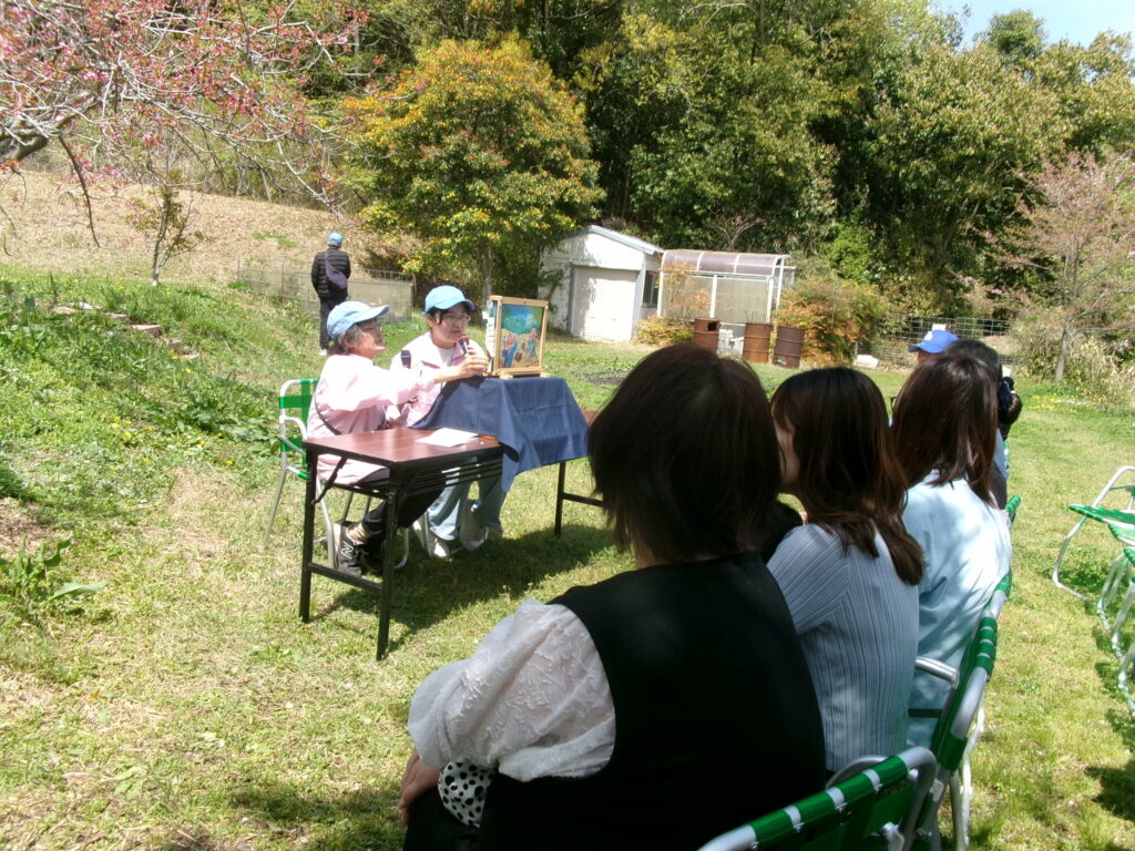 する万の富を探す会の紙芝居の読み手として、新人の恵美さんがデビ