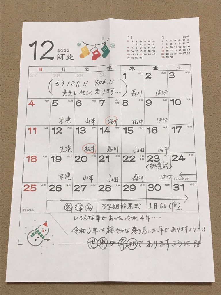 もう12月!! 師走!! 先生も忙しく走ります・・・。