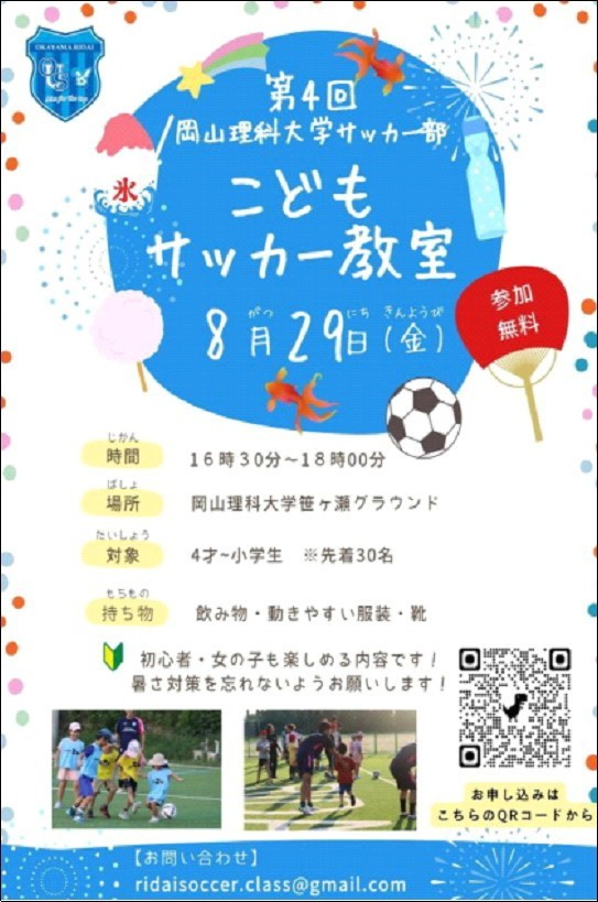 〇 8月29日(金)には〈第4回こどもサッカー教室〉が開催