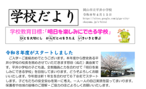 新着情報 2026年04月15日 平井小「学校だより4月号」 2026年03月28日 倉田交番ミニ広報紙4月号 2026年03月25日 春の健康チェックを開く 2026年03月25日 「市民のひろばおかやま」4月号を掲載(リンク) 2026年03月23日 東山公民館だより4月号 を掲載(リンク) 2026年03月11日 平井小学校「学校だより3月号」 2026年03月4日 地域づくり会議3月定例会を開催 2026年02月28日 倉田交番ミニ広報紙3月号 2026年02月27日 「市民のひろばおかやま」3月号を掲載(リンク) 2026年02月25日 平井小学校「学校だより2月号」 新着情報一覧