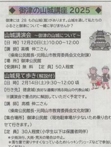 新着情報 2025年12月5日 みなみっ子だより11月号(回覧) 2025年12月4日 御津工業団地の市道、河内高津1号線が片側交互通行になりました 2025年12月3日 「明日天気にな〜れ」〜子どもの未来も晴れるかな〜 2025年12月2日 11月度月間アクセス数2025 2025年12月1日 「和凧作り教室」2025 2025年11月29日 「御津の山城講座2025」 2025年11月29日 「パンどろぼう展」 2025年11月28日 「大人のための名画鑑賞会」202512,1 2025年11月28日 「クリスマスカフェ」、「初春カフェ」2025 2025年11月27日 なかよし畑に玉葱の苗を植えました2025 2025年11月25日 岡山北警察署LINE情報150 2025年11月23日 「岡山の文化と出会う」―宗教美術から超絶技巧までー 2025年11月22日 母谷地区 健康教室「サロン」のご案内(回覧)●2025秋 2025年11月21日 ピチピチ消費生活だより (Vol35) 2025年11月20日 たけべマルシェ2025 2025年11月19日 オーキッドフェアのお知らせ2025 2025年11月19日 「スポーツ講演会」スポーツドクターとして30年の経験から 2025年11月18日 産廃処分場からの排水の調査を実施しました2025 新着情報一覧