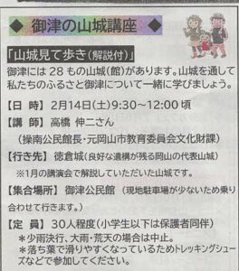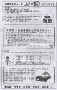新着情報 2026年01月29日 地域安全ニュース 岡山北警察署・宇垣駐在所(2月) 2026年01月28日 「御津図書館からのお知らせ(休館)」20260216-28 2026年01月28日 地域安全ニュース 1月号岡山北警察署 (回覧) 2026年01月27日 「御津の山城講座」202602 2026年01月26日 新田池改修工事のお知らせ(回覧) 2026年01月25日 「ラストサムライ滝善三郎のBUSHIDO」DVD上映会 2026年01月24日 「節分カフェ」、「ひなまつりカフェ」2026 2026年01月22日 2026年「お年玉付き年賀はがき」当せん番号発表! 2026年01月20日 健康講座笑いヨガ免疫UP!大会in倉敷 2026年01月18日 ピチピチ消費生活だより (Vol37) 2026年01月17日 みなみっ子だより1月号(回覧) 2026年01月16日 「坪田譲治文学賞 贈呈式・記念行事」2026 2026年01月15日 母谷区自治会及び水利組合通常総会の開催のお知らせ( 回覧) 2026年01月13日 12月度月間アクセス数2025 2026年01月11日 新田池改修工事が開始されます 2026年01月11日 第10回「御津いいとこどりフォトコンテスト」 2026年01月8日 第五回母谷新春グランドゴルフ大会が開催されました 2026年01月7日 岡山北警察署LINE情報153 新着情報一覧