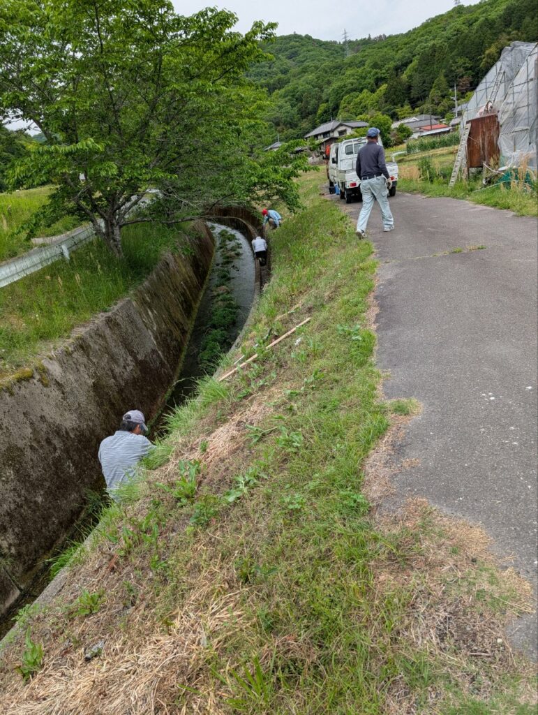 5月初めに地元の営農組合が早生の苗代作りを行なってから、自作の農家でも小規模な苗代作りが始まりました。5月18日に営農組合の親族を中心に地区内や理大の学生達4名も協力して下さり、合計15名で母谷地区最後の苗代作りが朝一番から行なわれました。半端ない量でしたが、作業分担して手際よく作業し夕方には終了しました。ご協力下さった方々、本当にありがとうございました。第一弾で作った苗はすくすくと育っています。5月11日から始めた水路の補修も役員で数回実施して5月21日に完了しています。5月25日には地域での用水路の泥上げ作業も完了しました。作業にご協力くださった方々、お疲れ様でした。本当にありがとうございました。6月8日には新田池の上の田んぼで早生の苗を使って「田植え体験」のイベントを予定していますので、たくさんの子ども達の参加をお待ちしています。