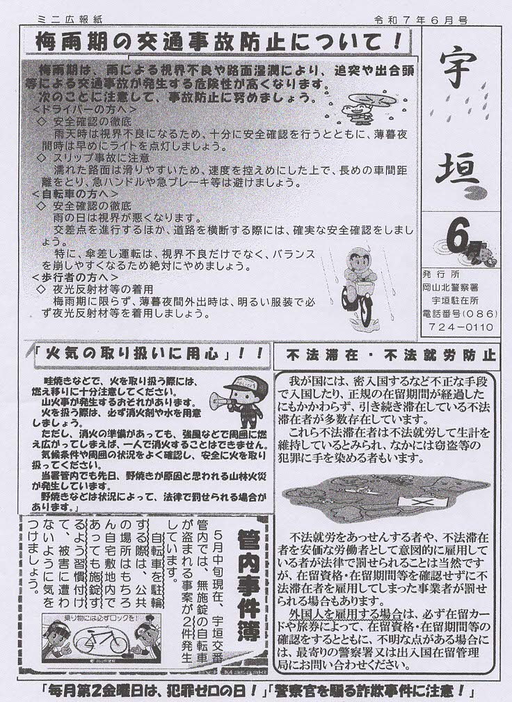 地域安全ニュース 岡山北警察署・宇垣駐在所(6月)