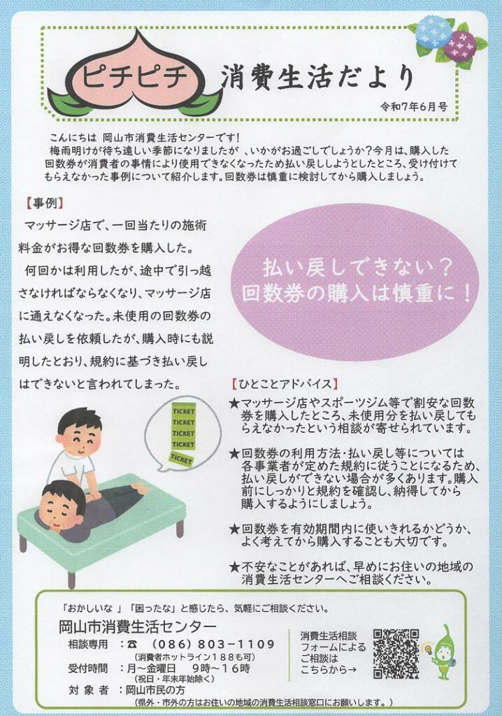 岡山市消費生活センターからの情報です。令和7年6月号より