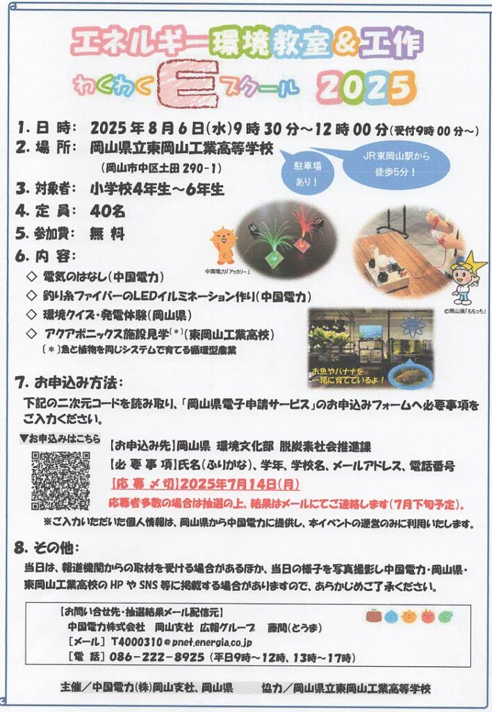 中国電力・岡山県合同企画「わくわくEスクール2025」開催のご案内