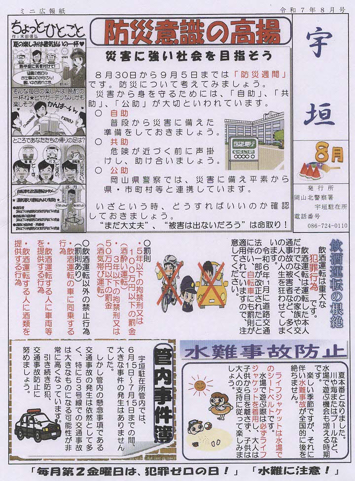 地域安全ニュース 岡山北警察署・宇垣駐在所(8月)