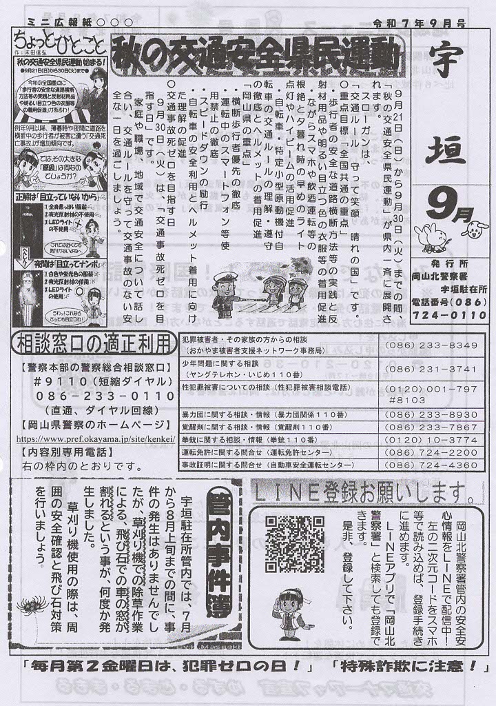 岡山北警察署 令和7年9月号・宇垣駐在所