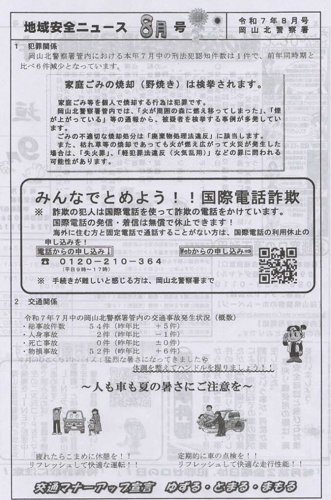 地域安全ニュース 8月号岡山北警察署 (回覧)