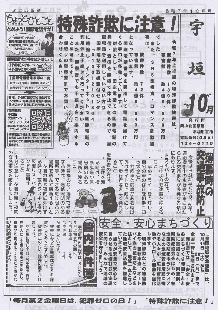 地域安全ニュース 岡山北警察署・宇垣駐在所(10月)