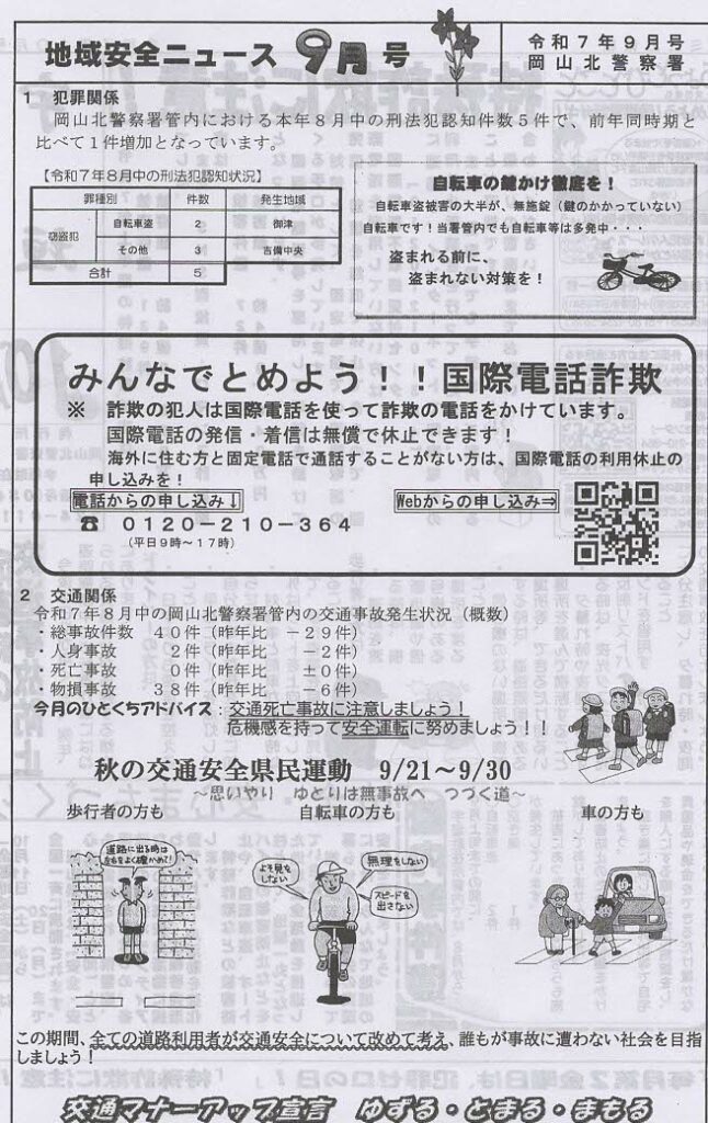 地域安全ニュース 9月号岡山北警察署 (回覧)