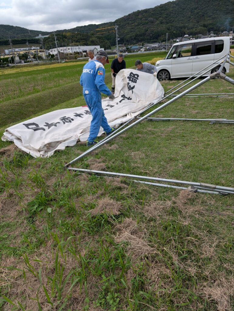 用水路の生物調査と芋掘りは中止しました2025 投稿日:2025年10月21日 10月19日開催予定だった「用水路の生物調査と芋掘り」イベントは前日夜中の大雨による用水路の増水と芋畑の水たまりにより中止いたしました。芋は11月に収穫して「餅つき体験」イベント参加者に提供する予定です。餅つき体験への多数の参加をお願いいたします。 前日の準備及び19日夕方の後片付けに参加いただいた役員の方々、お疲れ様でした。協力ありがとうございました。 前日のテント設営会場案内の幟 発電機、机など積み込みテントの解体テント積み込み完了 ツイート カテゴリー:里山保全会