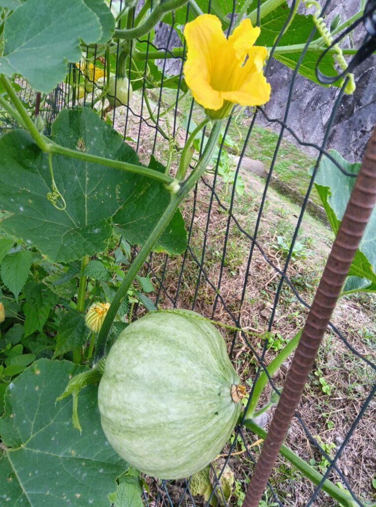 今年は5月に植えたカボチャと金瓜を7月に1度収穫しました。そのうちの一部の実を畑に放置していたところ、種が発芽し蔓が成長してきました。そして10月中旬の今、2回目を収穫できました。カボチャも金瓜も甘く美味しいものでした。朝顔も2回目の花です。夏日が10月中旬まで続くと、来年は夏野菜を2回作れるかもしれません。自然環境の変化に不安を感じる一方、こんな事ができると驚きです。