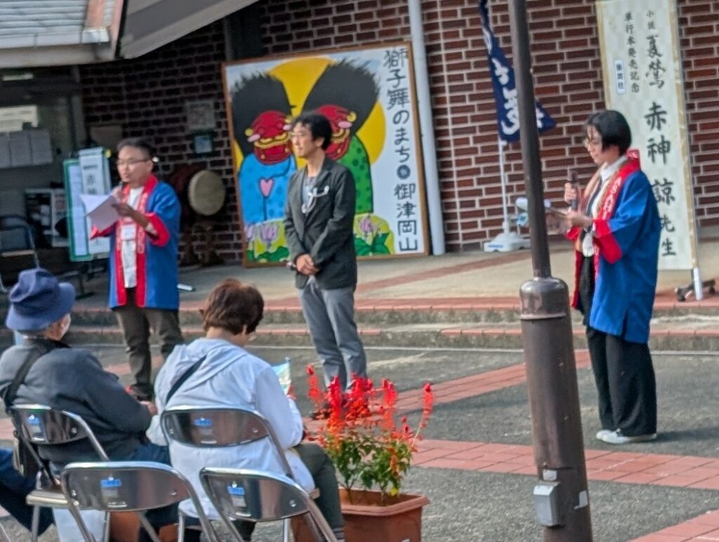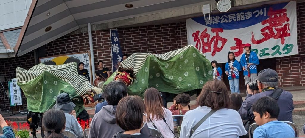 11月1日、2日に「獅子舞フェスタ」が開催されました。2日は熊野神社の掃除が終わってから見学に行きました。当日はたくさんの方々が来場下さり、お店もほとんど売り切れに成るほどの盛況でした。ご来場くださった皆様ありがとうございました。後片付けにも多数の方々がご協力くださいました。母谷のたかおさんが机2枚を両手で下げて運んでくれた怪力にはびっくりしました。今年も朝日塾と御津高校の皆さんの活躍に厚く感謝いたします。ありがとうございました。