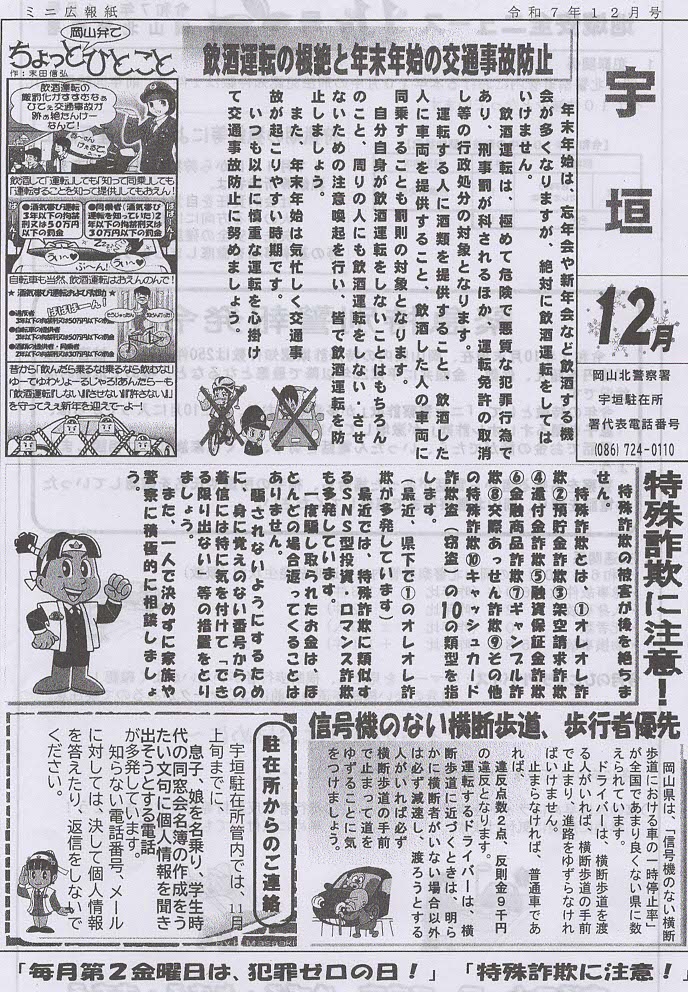 岡山北警察署 令和7年12月号・宇垣駐在所