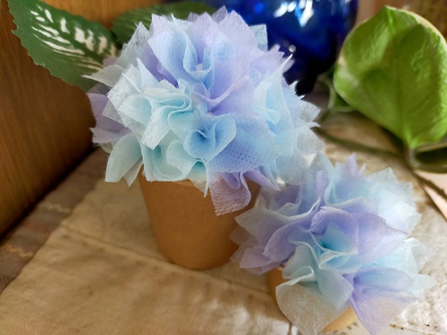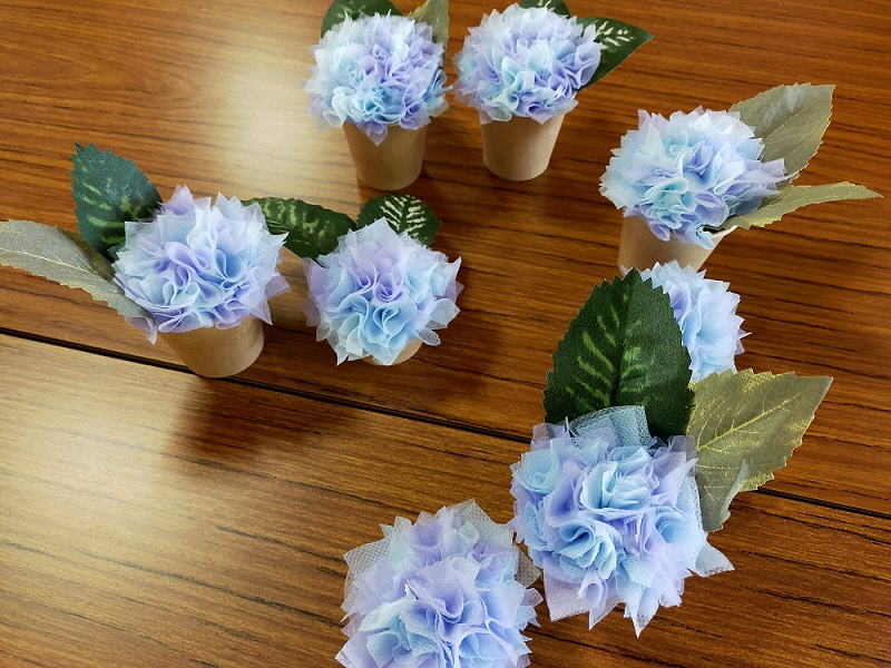 慈眼院お寺カフェでは5月28日(水)午後1時半~、季節の紫陽花飾りを作りました。かわいい紫陽花が出来上がりました!