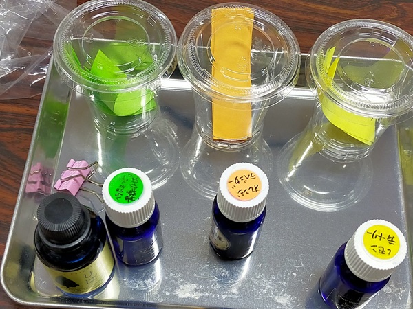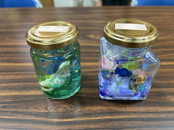 精油(植物から抽出された100%天然の香り)を使って、バスボムと保冷剤を利用したアロマジェルポットを作りました。