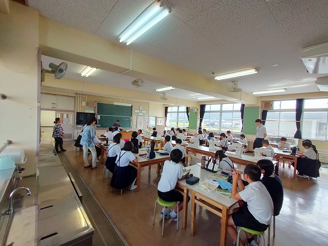 古都小学校5年生は、家庭科の授業でウォールポケット(小物入れ)作り。