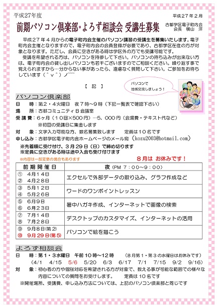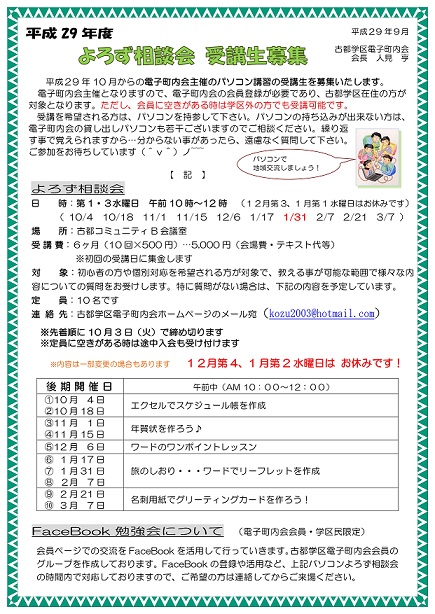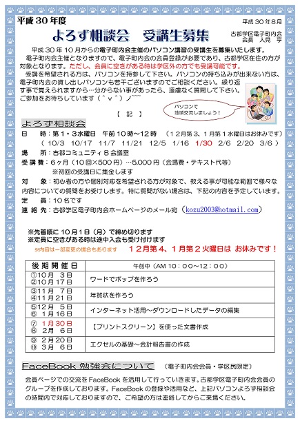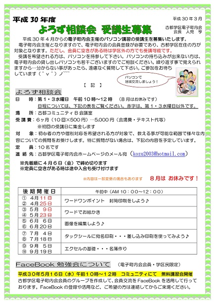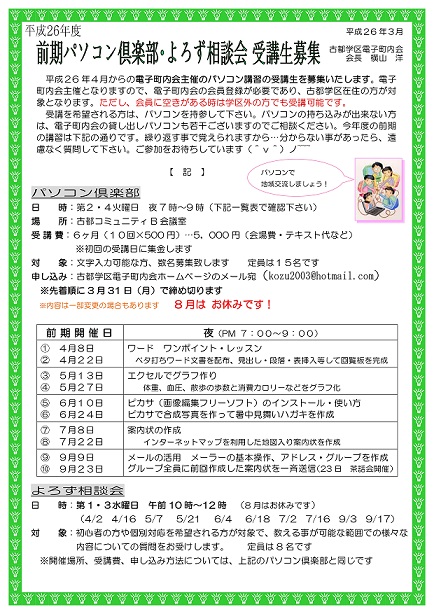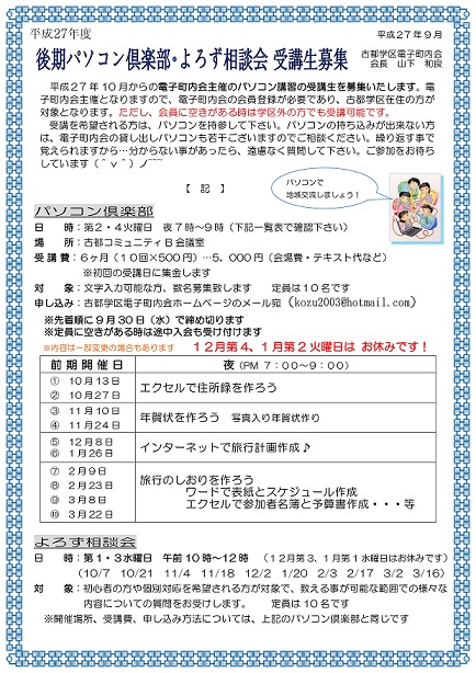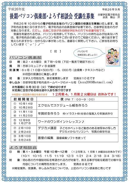 パソコン倶楽部・よろず相談会 募集チラシ一覧(H26年度~H30年度)