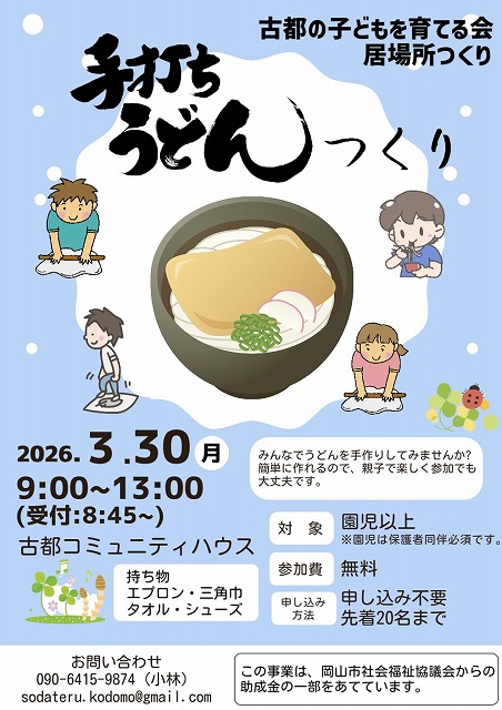 3/30古都の子どもを育てる会 居場所つくり 『手打ちうどんつくり』ご案内