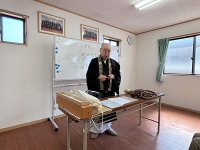 慈眼院住職より、百万遍のお話しをしていただきました。そして実際に百万遍を体験しました。