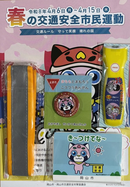 チラシの中には反射タスキ、LEDライト、ティッシュ、カンバッジなどが入っていました。
