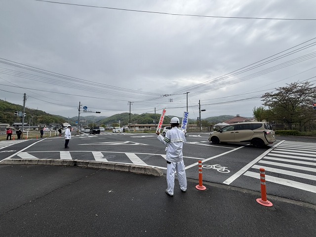 古都学区安全・安心協議会は、4月15日AM8時~岡山東支援学校付近の交差点で、岡山東支援学校の生徒さんと春の交通安全市民運動チラシ配布活動をしました。