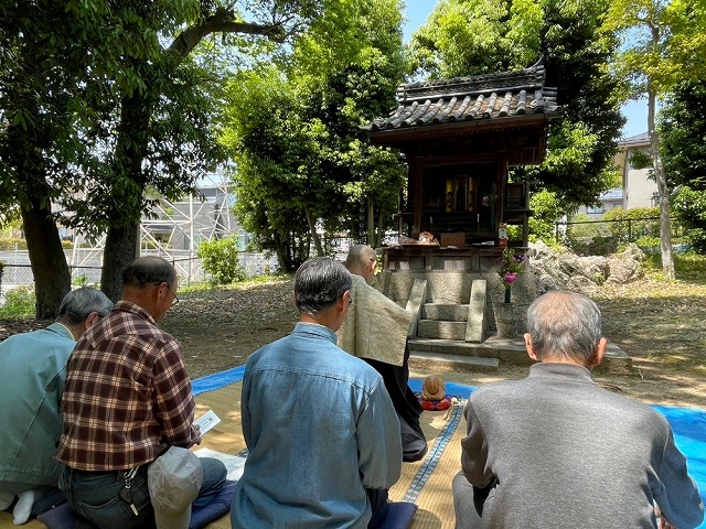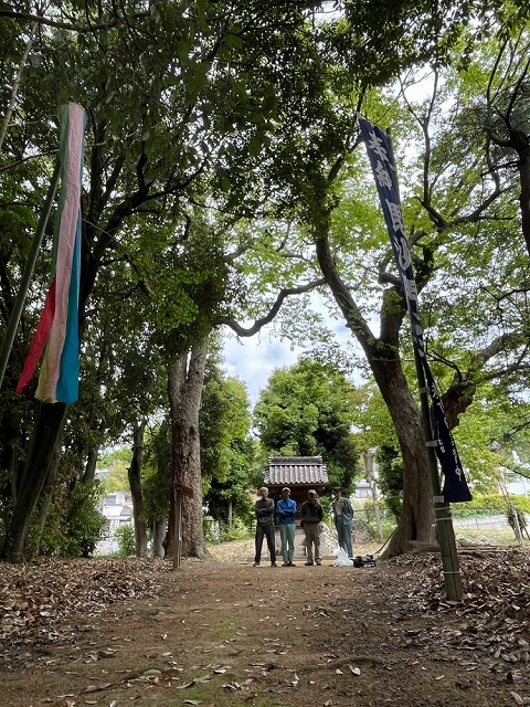 令和7年5月3日8時頃から、保存会メンバーが毘沙門天祭礼の準備を行いました。