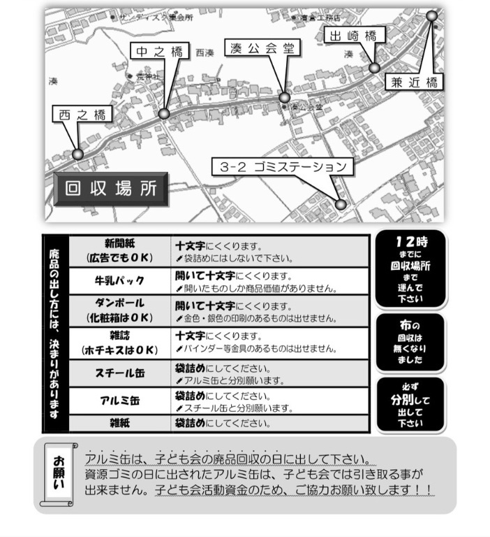 また、回収場所及び注意事項、お願いに関してもご確認をお願いします。