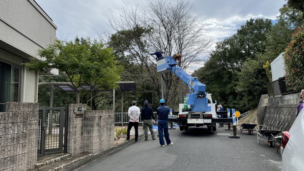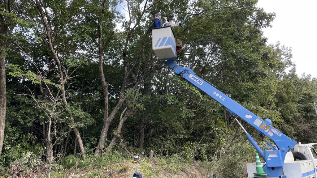 側道街灯周辺の樹木を伐採