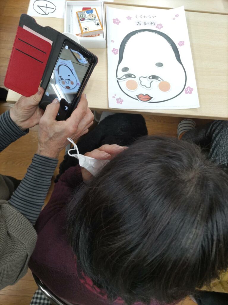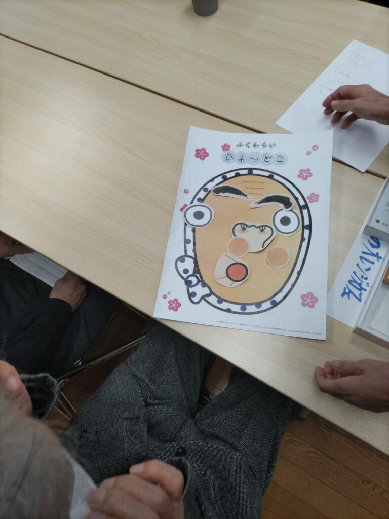 年始にも関わらず39人の方が参加され、「ひょっとこおかめの福笑い」「認知症予防かるた」「替え歌の合唱」など、皆で楽しい時間を過ごすことができました。