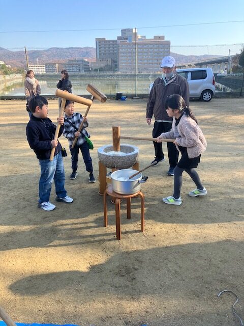 餅つきを体験した子供たちからは、「杵が重たかったけど楽しかった。」「自分で搗いたお餅を美味しく食べられた。」などの感想が寄せられました。